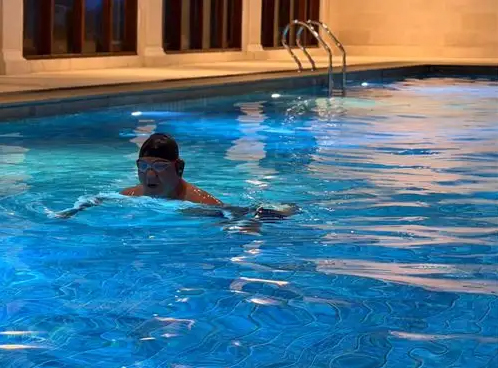 “Mengawali hari Sabtu ini, tepat am 05.00 subuh. Presiden Prabowo melaksanakan rutinitas pagi beliau untuk berenang selama sekitar 1 jam di kediaman pribadi beliau, Hambalang, Jawa Barat,” tulis dalam keterangan akun tersebut.