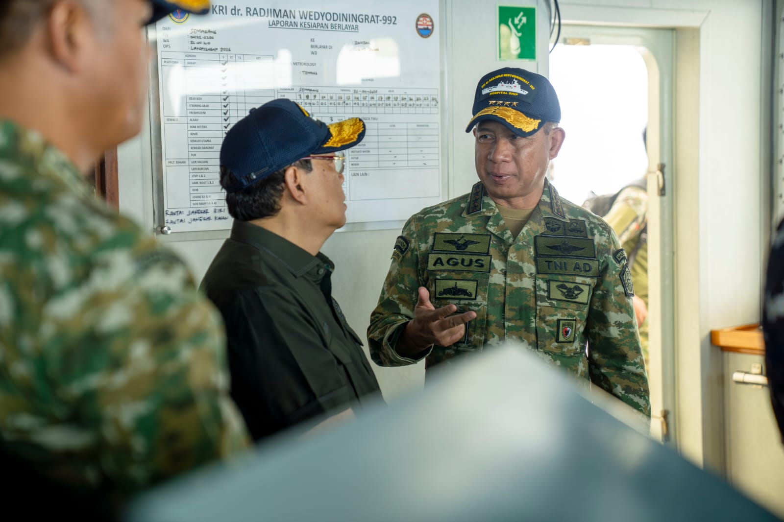 Jakarta – Panglima TNI Jenderal TNI Agus Subiyanto mendampingi Menteri Pertahanan RI Sjafrie Sjamsoeddin dalam peninjauan Latihan Operasi Laut Gabungan (Latopslagab) dan Penembakan Senjata Khusus TNI Tahun 2026 di Perairan Karimunjawa, Semarang, Kamis (23/4/2026). Kegiatan ini turut dihadiri Wakil Panglima TNI Jenderal TNI Tandyo Budi R, Kepala Staf Angkatan Darat Jenderal TNI Maruli Simanjuntak, Kepala Staf Angkatan Laut Laksamana TNI Muhammad Ali, Kepala Staf Angkatan Udara Marsekal TNI Mohamad Tonny Harjono serta Ketua Komisi 1 DPR RI Utut Adianto.
