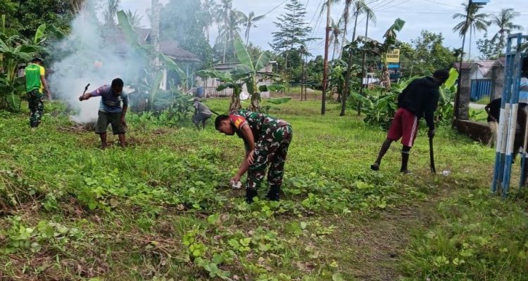 Babinsa Koramil 1710-07/Mapurujaya Ajak Warga Gotong Royong Bersihkan Halaman Gereja Uncategorized|April 10, 2026by posting Timika – Dalam upaya mempererat hubungan dengan masyarakat sekaligus menjaga kebersihan lingkungan, Babinsa Koramil