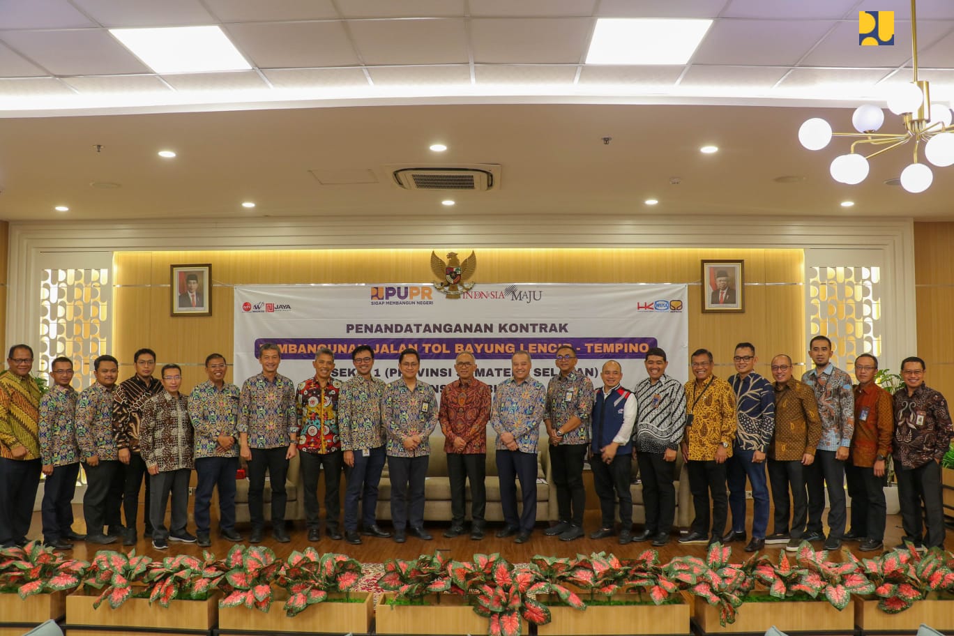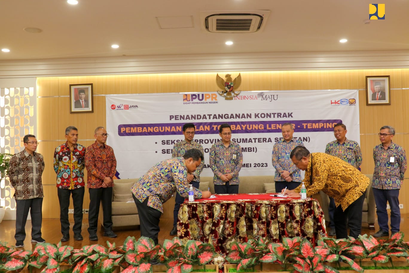 Pekerjaan konstruksi Tol Betung – Tempino – Jambi segera dimulai untuk ruas Tol Bayung Lencir – Tempino Seksi 1 dan Seksi 3 yang ditandai dengan penandatangan kontrak pembangunan antara Kementerian PUPR dengan penyedia jasa di Gedung Direktorat Jenderal (Ditjen) Bina Marga Kementerian PUPR, Rabu (17/5/2023).