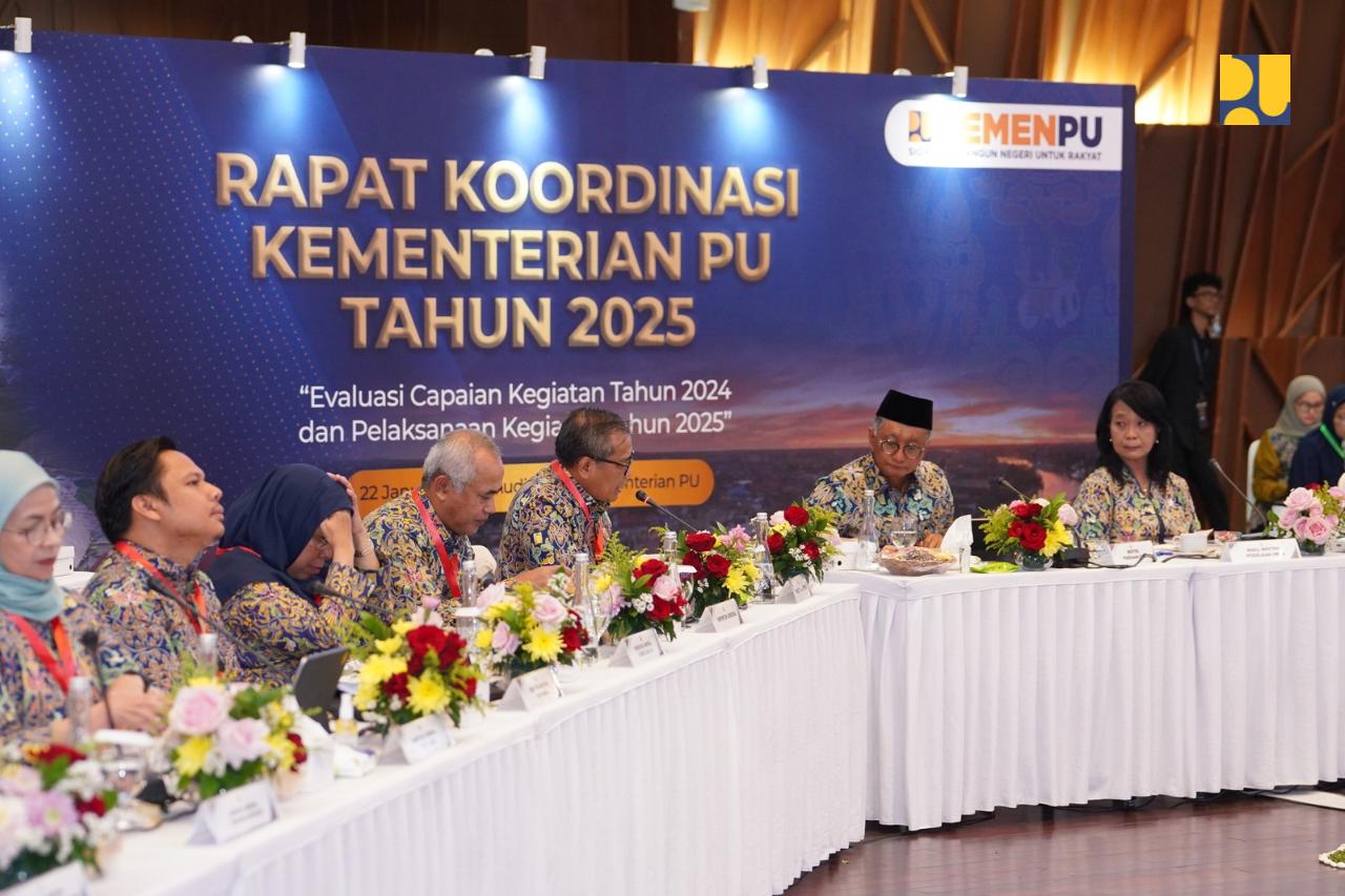 Jakarta – Kementerian Pekerjaan Umum (PU) menyelenggarakan Rapat Koordinasi (Rakor) Tahun Anggaran (TA) 2025 dengan agenda Evaluasi Capaian Pelaksanaan Kegiatan Tahun 2024, Rencana Strategis 2025-2029, dan Rencana Pelaksanaan Kegiatan Tahun 2025. Rakor diselenggarakan pada Rabu, (22/01/2025), di Auditorium Kementerian PU, dan dihadiri oleh seluruh Pejabat Tinggi Madya dan Pratama di lingkungan Kementerian PU, para Pejabat Administrator terkait, hingga Kepala Balai Besar/ Balai di seluruh Indonesia secara daring.