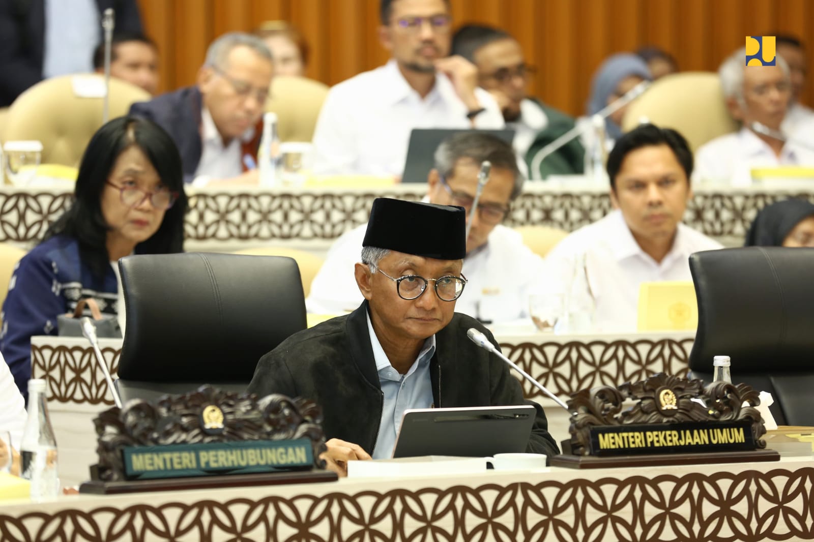 Jakarta – Menteri Pekerjaan Umum Dody Hanggodo bersama Wakil Menteri Diana Kusumastuti menghadiri Rapat Kerja (Raker) evaluasi infrastruktur dan transportasi pada arus mudik dan arus balik Natal 2024 dan Tahun Baru 2025 (Nataru) bersama Komisi V DPR RI di Jakarta, Kamis (23/1/2025). Kesiapan infrastruktur jalan dan jembatan turut berkontribusi dalam peningkatan kelancaran arus mudik dan arus balik selama masa Nataru 2024/2025.