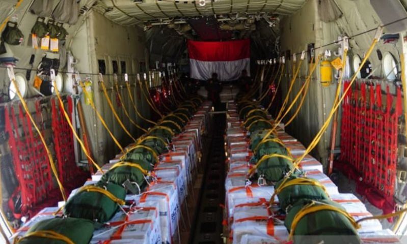 Tercatat total bantuan yang diberikan Indonesia sebesar 800 ton. Bantuan tersebut diterjunkan di 10 titik wilayah Gaza yang sudah dipastikan aman.