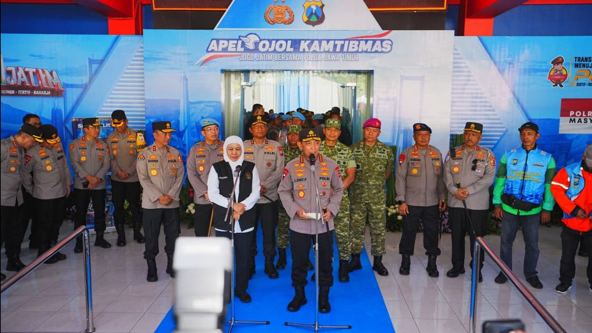 Adapun peserta apel terdiri dari 180 personel Bhabinkamtibmas, 150 anggota Satsamapta, serta 4.425 driver ojol dari berbagai wilayah di Jawa Timur.