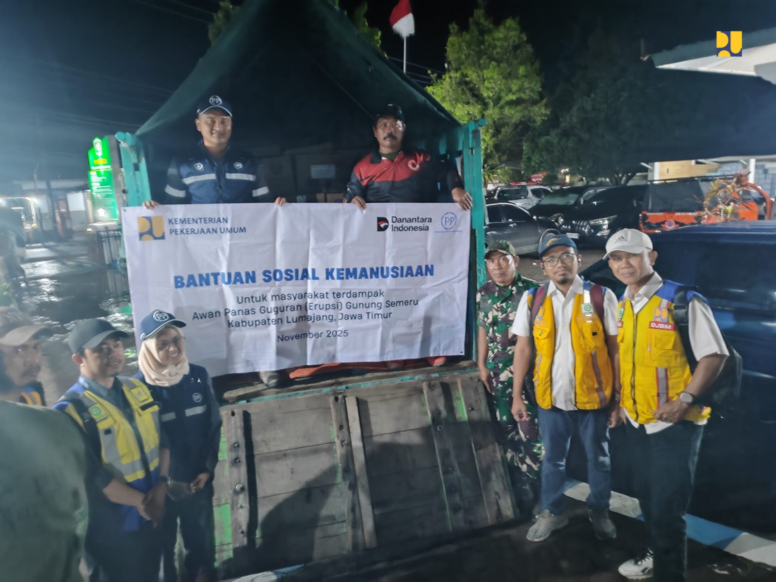 Jakarta – Kementerian Pekerjaan Umum (PU) menyalurkan Bantuan Sosial (Bansos) untuk memenuhi kebutuhan dasar masyarakat terdampak erupsi Gunung Semeru di wilayah Kabupaten Lumajang–Malang. Penyaluran dilakukan secara simbolis oleh Balai Besar Pelaksanaan Jalan Nasional (BBPJN) Jawa Timur–Bali di posko pengungsian Kantor Kecamatan Pronojiwo, Kabupaten Malang, Senin (24/11/2025).