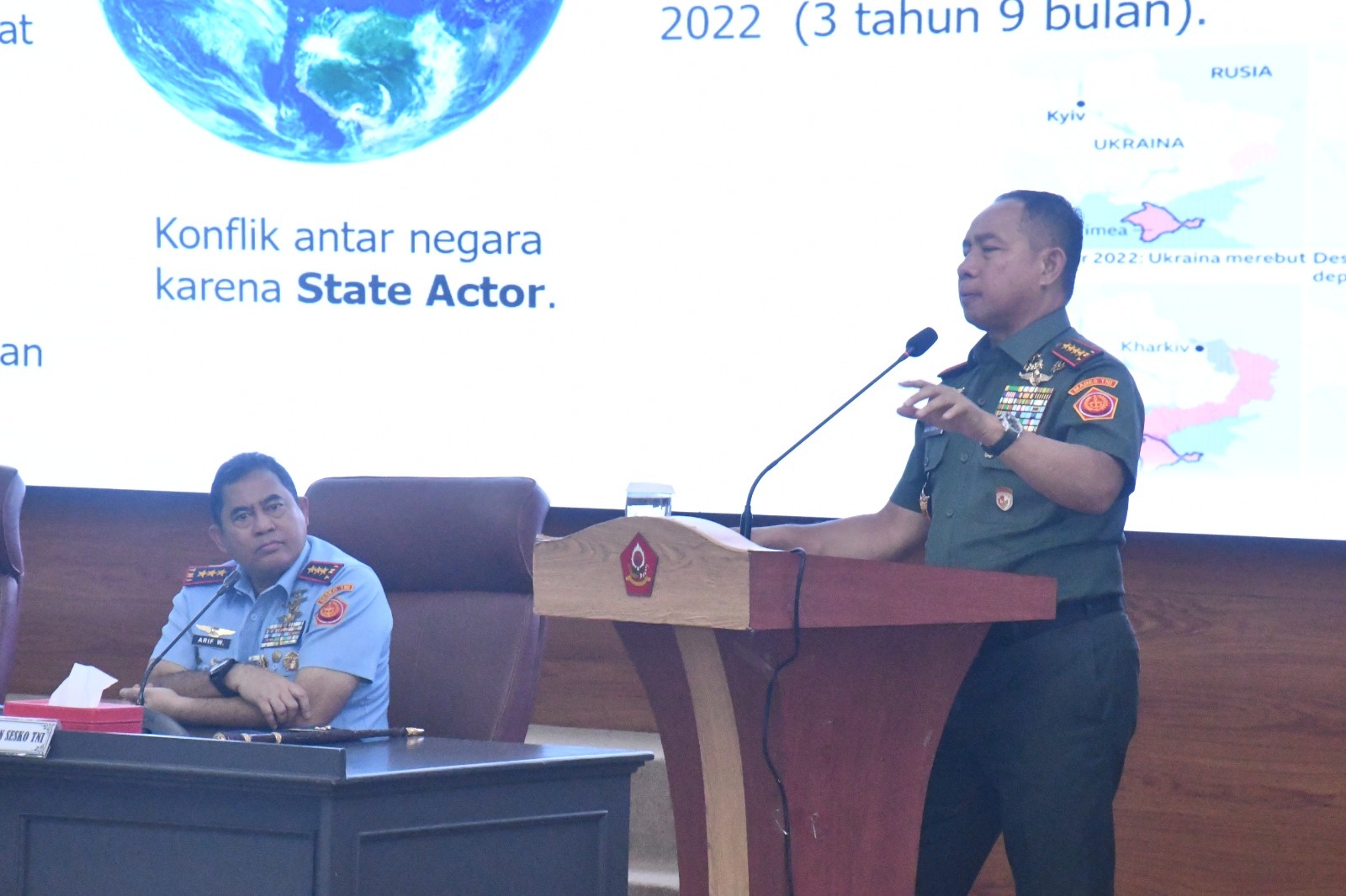 Panglima TNI memberikan penjelasan bahwa dinamika lingkungan strategis menuntut para perwira untuk tidak lagi berpikir secara konvensional. “Menghadapi perkembangan lingkungan strategis yang semakin cepat sehingga mindset kultur tidak bisa hanya berpikir konvensional, harus bisa merubah pola pikir, pola tindak sebagai perwira unggulan yang berpikir untuk kemajuan bangsa,” ujarnya.