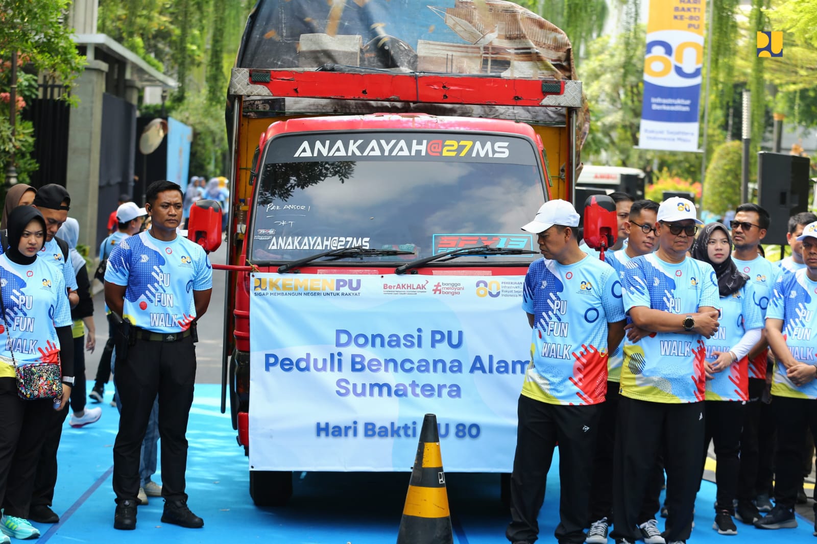 Jakarta – Dalam rangkaian peringatan Hari Bakti PU ke-80, Kementerian Pekerjaan Umum (PU) menyalurkan donasi kemanusiaan untuk membantu masyarakat terdampak bencana banjir dan longsor di Aceh, Sumatera Utara, dan Sumatera Barat. Bantuan ini merupakan hasil penggalangan donasi bertajuk “PU Peduli” yang melibatkan seluruh pegawai Kementerian PU di Indonesia serta Dharma Wanita Persatuan (DWP) Kementerian PU.